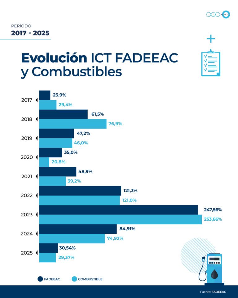 También se destacan los incrementos en Neumáticos (3,83%) y Combustible (3,10%) -el rubro de mayor incidencia en la estructura de costos-, que acumula un aumento del 21% en los últimos cinco meses, con alzas consecutivas desde junio. A pesar de esta dinámica, continúa vigente el diferimiento en la actualización de los impuestos específicos al gasoil, prorrogado por el Decreto 782/25 durante noviembre.
